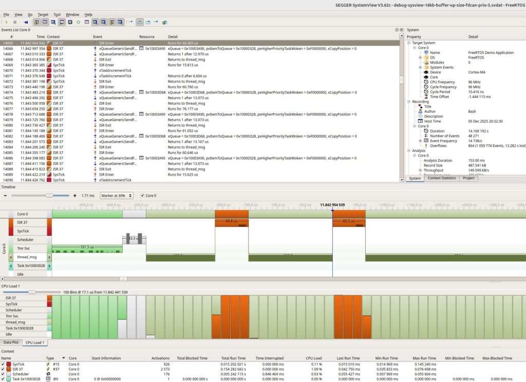 STM32G491, CAN-FD, FreeRTOS, SEGGER SystemView